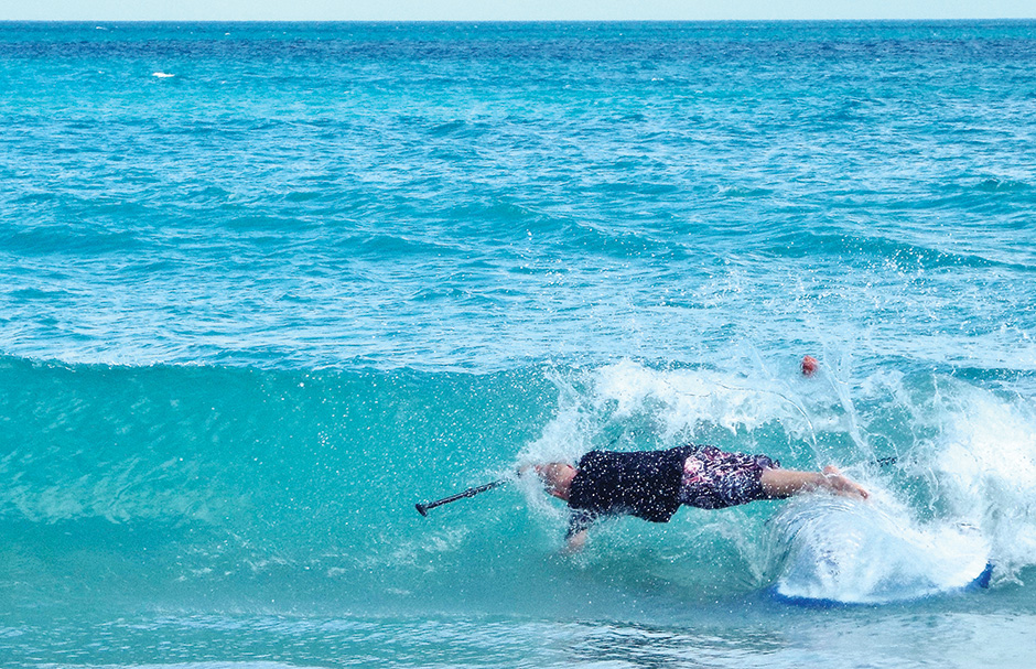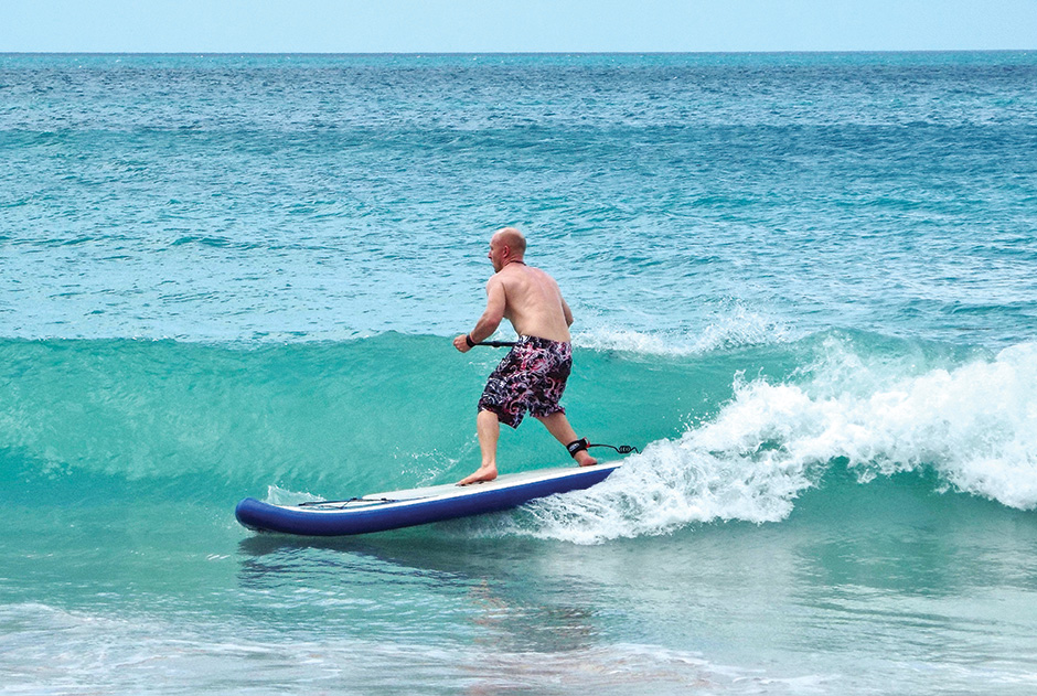 I’d decided to pop my Grand Anse cherry with a strenuous up ‘n’ down paddle next to the white sand shoreline. Scooping past groups of beach goers drew inquisitive looks and some heckles from the gallery. After a brief rest I banged in a quick 180 and red lined back to HQ. Even without any significant bumps it was still super fun huffing the three miles home.