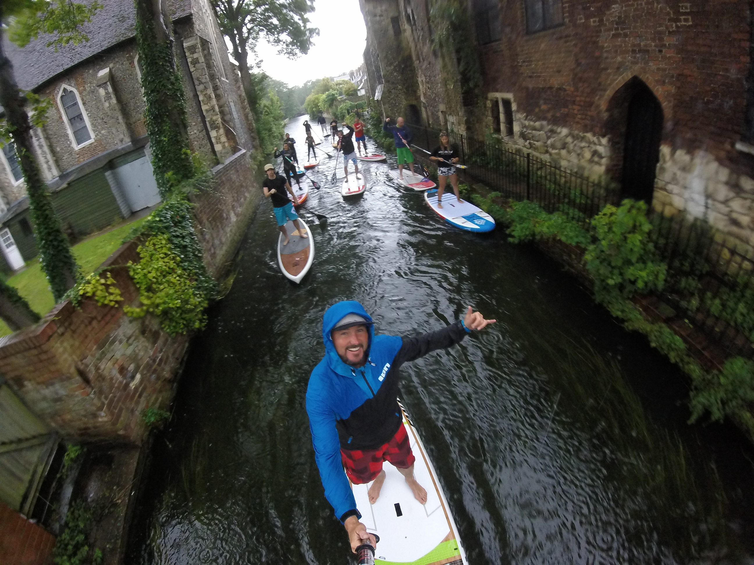 Jay ‘JSUP’ Manning’s SUP tours of Canterbury’s historical waterways have been super popular this summer. Featuring twisting and winding routes that penetrate the heart of the city Jay reports numbers of paddlers attending having been growing steadily – he even had two Californian dudes accompany him during one session.