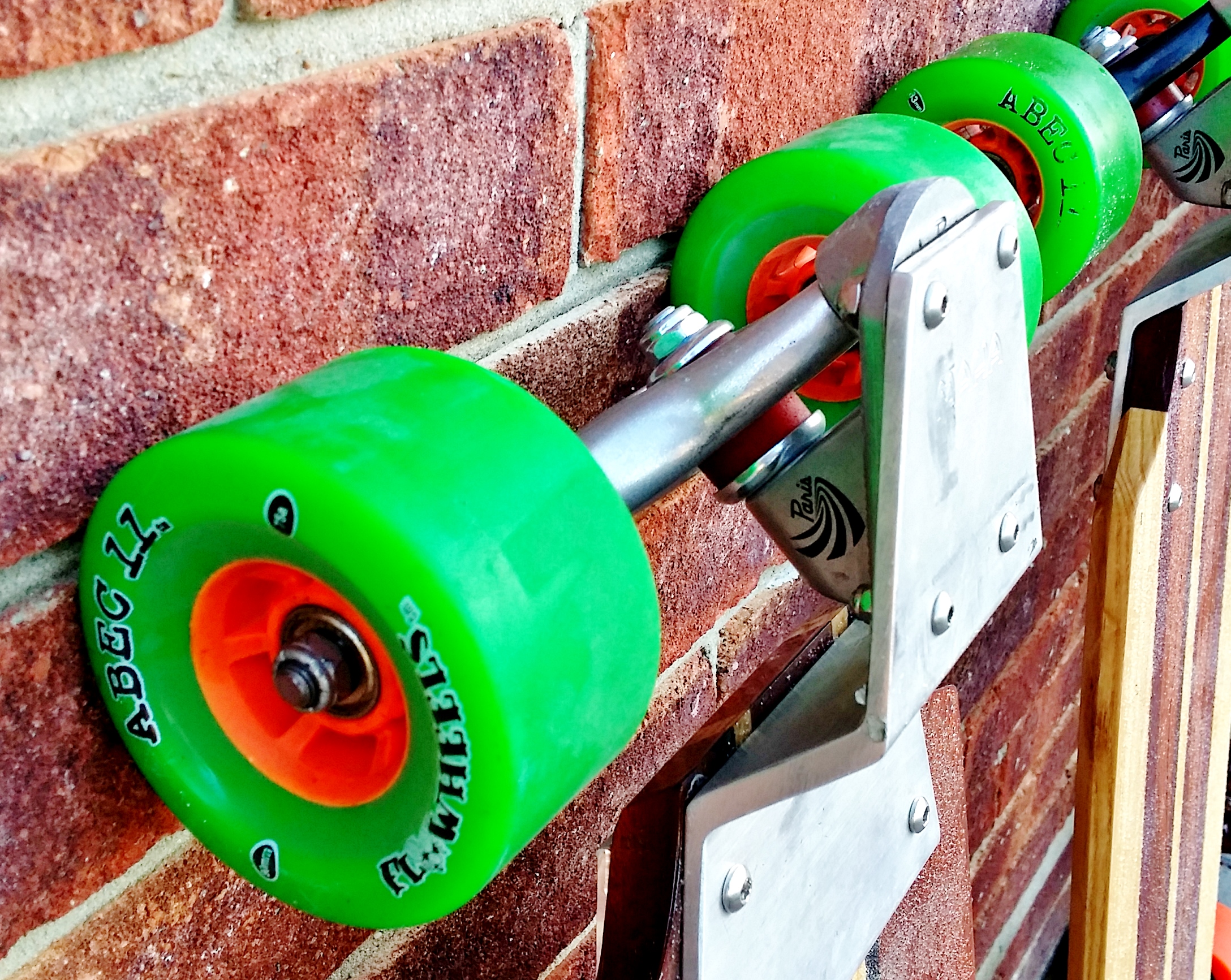 Wheels and bearings on both the single and double drop carvers are oversized and built for rolling. Longer boards will cover distance more efficiently but these two beauties also chew the miles up if needed. For our money, however, it’s their carving attributes which win out and they’re great for perfecting slides, hard tail squirts and mimicking slashy surf moves.