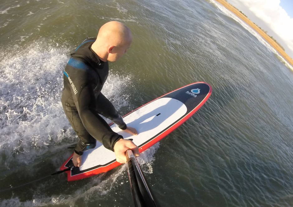 During its christening session the Warrior’s domed deck was the first thing we noticed. This may take a bit of getting used to as it makes the board feel rolly, but very comfortable. Tracking well the Warrior glides effortlessly and nose rocker stays clear of flotsam. If there’s a windy wave the Hatha retains composure as it sits slightly lower in the water – making it good for onshore days, exploring exposed offshore breaks or anxious paddlers still perfecting their skills.