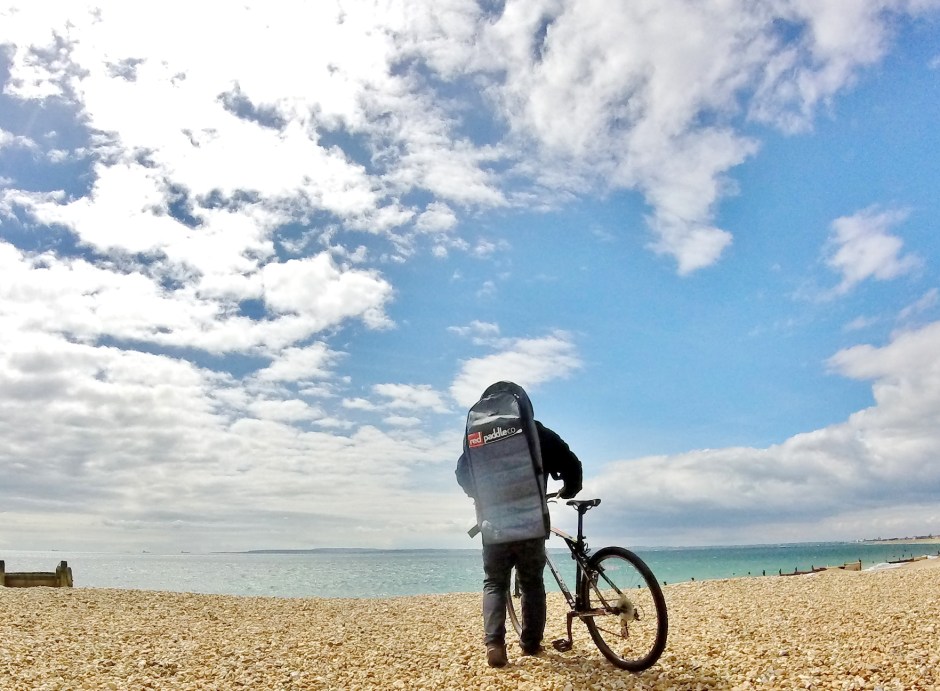 With Red’s padded bag and comfy shoulder straps, biking with a SUP on the back was a relatively simple and pleasant experience. Granted our journey from house to beach wasn’t overly long but even with extended routes in mind, as long as the bag doesn’t chaff and kit weigh you down, then choosing pedal power to get your paddling fix should be as equally fine and dandy.
