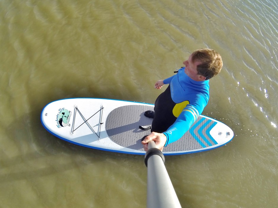 We didn’t have the opportunity to use Freshwater Bay Paddleboard Co’s air board in waves but we did find a few rolling bumps to play on. In downwind mode it’s a surprisingly adept performer – much more so that you’d appreciate. Sweeping into wind is hard work with a round nose inflatable but coming back the opposite way, breeze on your back, is good fun and could open up this area of paddling to budding bump rippers.