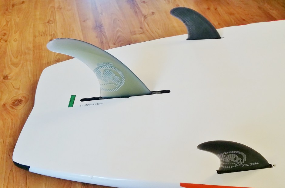 More and more we’re seeing parallel rail concept designs, that’s been a trait of short performance surf SUPs the last few seasons, spreading to longer/bigger shapes – RRD’s Morpho 9.4ft being a case in point. On first look the Morpho’s cut off tail/nose and 9ft+ length gives it a striking aesthetic. This is only heightened when you flip the board over and note the deep chines cut into the hull. A 2+1 thruster fin set up, (with US Box middle and Futures side bites) completes the package. Over to test teamer Steph for the low down.