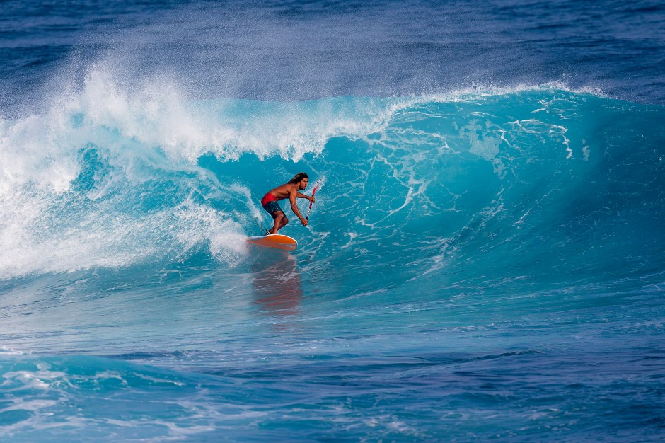 I have been to Oahu. It is very special and the atmosphere is unique – the mecca for surfing. Last time I went it was good but really big. It’s intense but a little bit frustrating when you cannot do any maneuvers. You make big drops on huge walls and try to keep control and have the right line at full speed. I was the only rider with a small board (8’0) while everyone else had semi guns around 9’0 or 10’0. I also love Maui. I find the potential for SUP there is even bigger because there are fewer people. There is an incredible level out there, the world’s best SUP riders live on the island. It’s always good to surf in Maui.