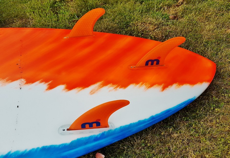 Picking up Mistral’s Cloud Nine (geddit) Cloud Burst surf SUP you wouldn’t think it was 32” x 145L. Even with a full deck pad it feels light as a feather and looks good to boot with its vivid graphical livery. If you haven’t seen a Mistral sled of late then you’ll be pleased with what you find here: top notch manufacturing and attention to detail given to all the right places. Don’t misunderstand the Cloud Nine Cloud Burst, however, because as much as it’s a performance ripper it’s also user friendly to the layman.
