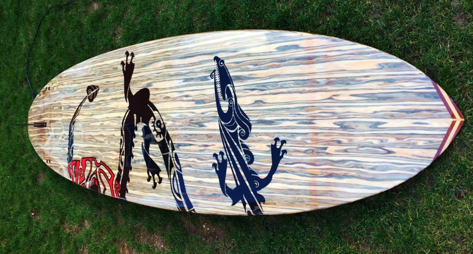 First off is the Pono’s gorgeous looking Applewood veneer which is arguably one of the prettiest finishes we’ve set eyes on. Hypr Hawaii’s trademark hull contours then stand out as per normal with high end fixtures and fittings. It’s also nice to see a complimentary deck pad that sets the off the Applewood. A US box central fin system with FCS side bites rounds out an impressive package.