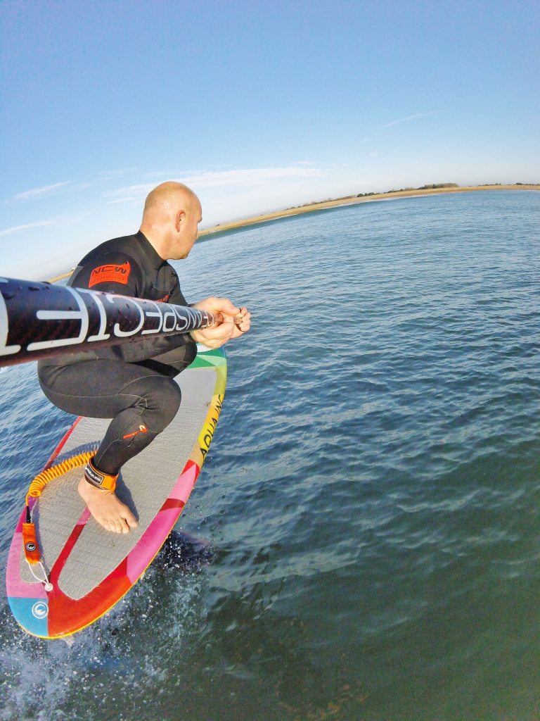 Quickly rejig the van with equipment and head off. Usually, it’s me taking little one to nursery. Drop him, say goodbye then boot it back to the beach, perhaps stopping briefly for some food fuel. Arrive on the sand and quickly take stock. Are conditions on forecast? If so, grab piece of gear according to Mother Nature’s mood (remember this isn’t just SUP. It could also be windsurfing as we have another publication in the mix that needs to be kept on top of). Rig up/prepare kit (as quick as poss – no time for dawdling). Head out on said piece of gear and stomp the session. After around an hour it’s back to beach to pack up and head to office.