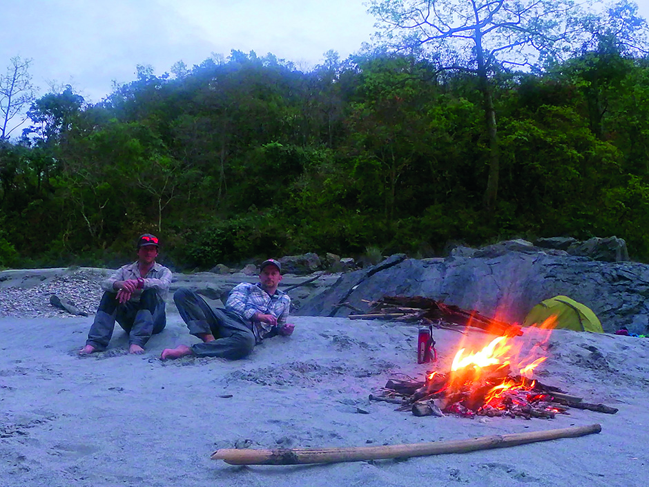 Picking a camp was difficult. Ideally we wanted something to ourselves, but so often there’s a small bridge leading to a village. Though I have never had a bad experience in Nepal, I felt very aware there were only two of us, sleeping on the side of the river in a remote area with expensive and unusual kit around us. Eventually we found a small semi-secluded patch of sand behind thick scrubland. It was soon home and we settled down for the night.