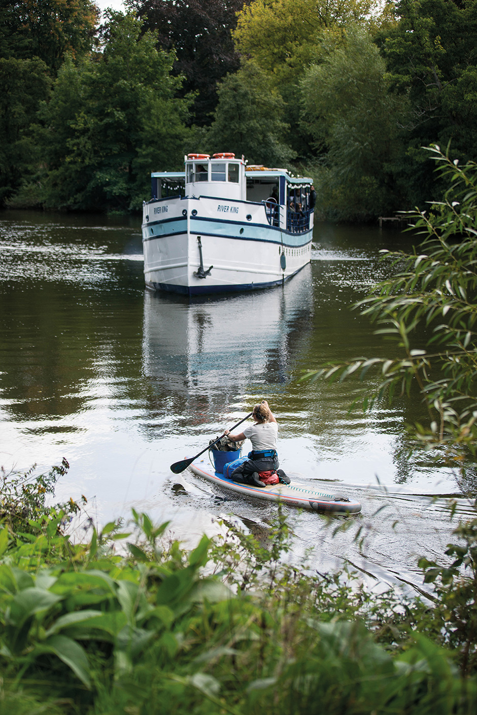 The river continued to wind its way towards the sea, and I was soon in the town of Shrewsbury. Instantly I felt my smile falter. I became conscious of onlookers and aware that I was no longer alone with nature but enclosed by tall walls protecting the town and our meaningful lives from this body of water. No more kingfishers or herons, but plenty of plastic bottles as I paddled through the canalised river. Shrewsbury is beautiful, and it was a pleasure to see from the water. However, it felt very different from the previous couple of days.