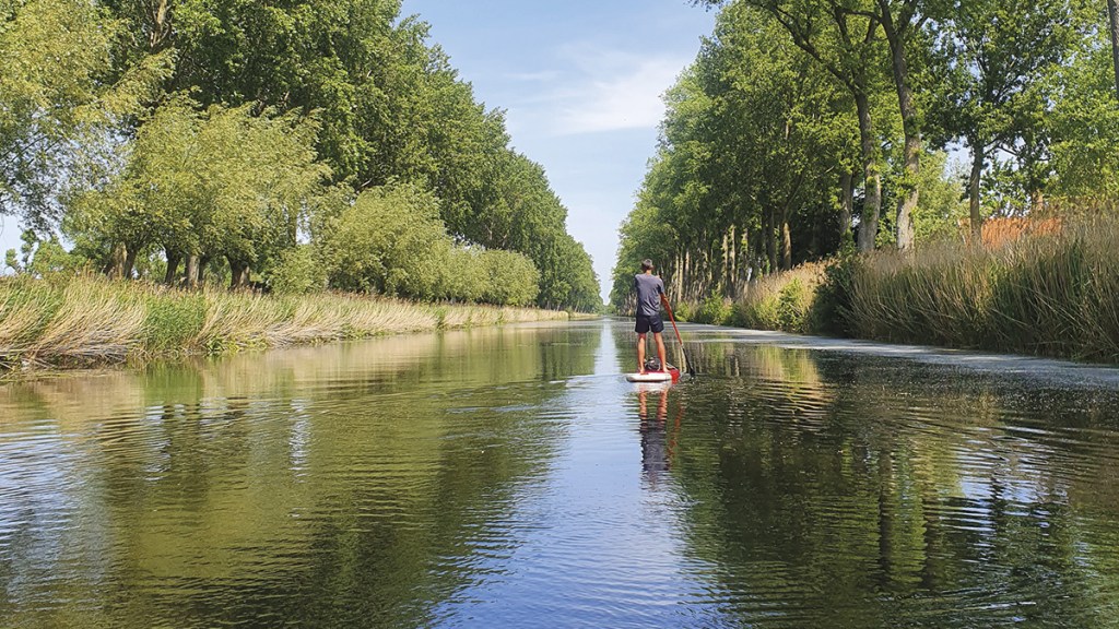 The Dender is a 65km long river, which flows by Dendermonde in the Scheldt River. It flows through the three Belgian provinces of Hennegau, East Flanders and Flemish Brabant. Véronique’s preferred section is between the towns Erembodegem and Ninove. This part of the river is beautiful in nature. Fields and trees all the way. Sometimes, boats pass by but they navigate so slowly that these ships are not dangerous for SUPers. You will cross some locks and a small charming harbour where a couple of sport boats are located on this section. This part of the river is beautiful, and you will meet many animals like ducks, blue herons, geese and cute hummingbirds. A particularly Belgian touch: hops on the banks! On windless days, the river will offer you a beautiful reflection of the surrounding trees and nature. You will also see the fishes swim under your board.
