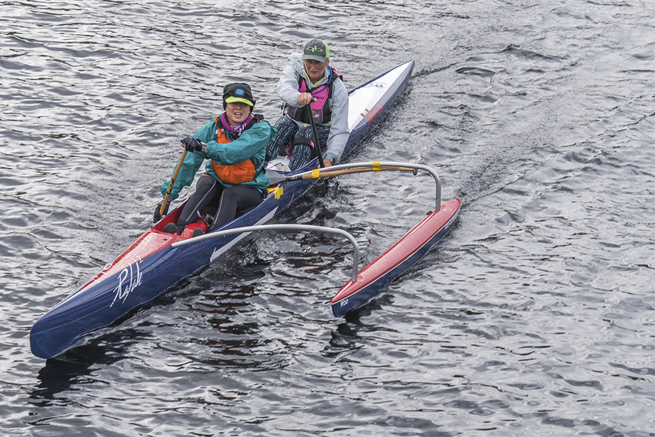 A large contingent from the Netherlands had come over to challenge in the two-day SUP. Reinder Ijmker had recently won the non-stop 220km competition at the 11 cities. He and the others train twice weekly, revelling in the windy conditions and practising ‘downwinding’ on the Dutch coast. Reinder smashed the two-day event in a combined 10hrs 34mins with colleague Marnix Van der Boom just a few minutes behind. Dave Ewer (UK) took third place in 10hr 56mins. Diane Koorstra took first lady with 12hrs 11mins and Angela Kerr (Scotland) second in 13hrs 43mins.