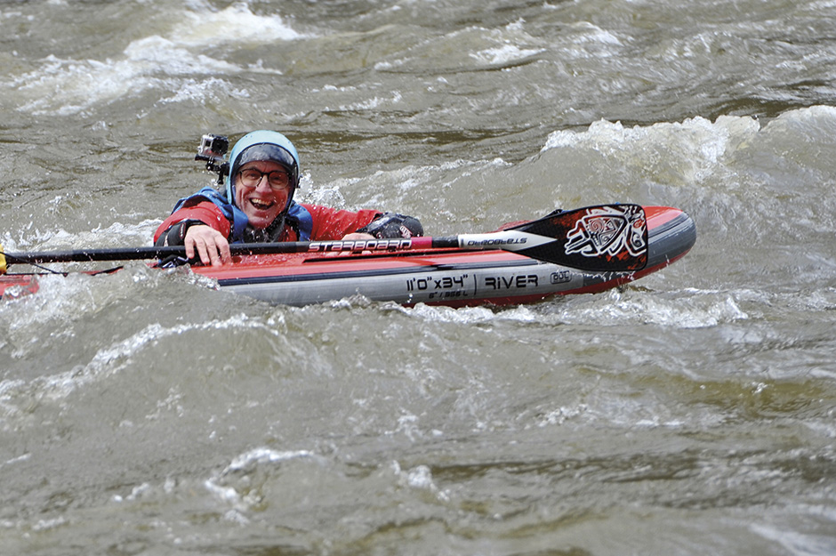 Steve led the way, as being the local lad, he had the most experience in this section. Tom followed and then me, leaving a good amount of space between us all. Some of us would likely be swimming, and there is nothing worse than another paddler being right on top of you. In no time, we were all through that section, riding those waves, and yes, we had a few fallers. Everybody who went in got back on their boards quickly and hugged the side to wait for the others. That adrenalin rush and relief that you are safe and gave it your best shot – I don’t think you can beat it. It’s a bit like the rush of catching a wave in the ocean!