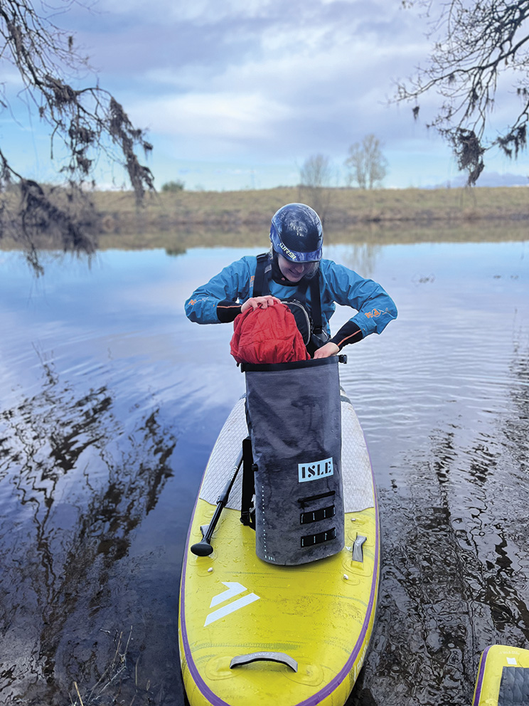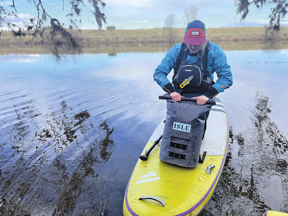I found this backpack to be optimally sized for day trips. It gave me enough space to stuff it full of dry clothes or offer ample space for food, drinks, and, of course, snacks. With its rugged waterproof shell, it was waterproof and could withstand a heavy pour. (This comes in handy when living in Scotland.) It also has an ISLE-LINK connect system. I thought this was pretty cool. It’s so you can attach it to their compatible SUP. I used the bag on an awful day in stormy conditions. I put all my dry kit in it, and at the end of it, I had dry clothes and my sandwich wasn’t crushed—success!