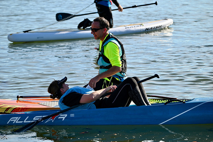 During the first lap, our comms with the safety cover from Coast to Coast Water Safety soon had a few people needing escorting back to shore, which further cemented why I chose to work alongside this very professional team. Conditions were undoubtedly challenging, and huge credit goes to everyone who got out on the water and gave it their all; I witnessed plenty of grit and determination but, above all, lots of smiles. Once ashore, when the race had finished, everyone felt a huge sense of achievement. In the 14’ category, Paul Simmons, Zoltan Erdelyi and Dave took to the Men’s 14’ podium. Annabel Page, Holly Pye and Marie Buchanan took the women’s podiums.